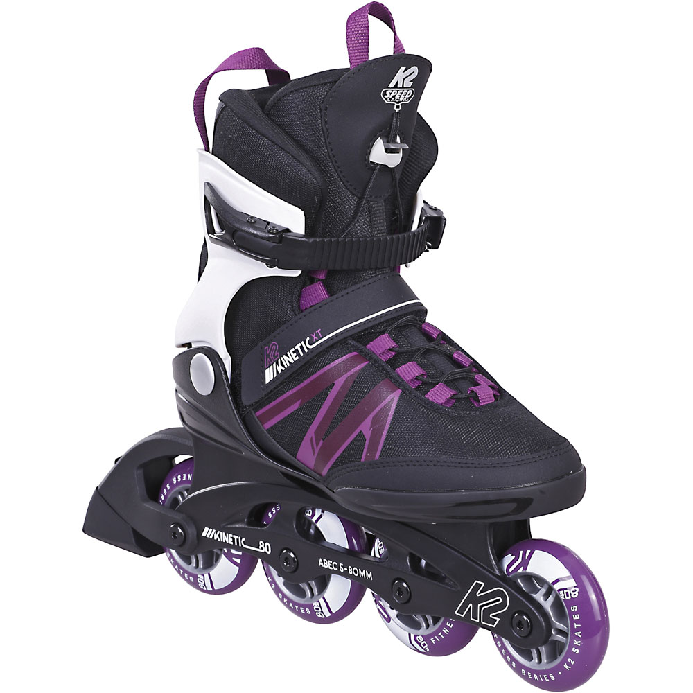 Bei Freizeit-Skates ist der Kinetic 80 Pro XT W die Schnittstelle zwischen Style, Leistung und fairem Preis. Er verfügt über die F.B.I.-Schiene von K2, um Erschütterungen zu absorbieren und um den Schwerpunkt des Skaters weiter nach unten zu verlegen, was wiederum für ein größeres Gleichgewicht sorgt. Sein Stability Cuff ist die perfekte Symbiose aus optimalem Halt im Sprunggelenksbereich und der nötigen Flexibilität. Das K2 Speed Lacing System ermöglicht durch einen Zug ein schnelles Festschnüren des Schuhs und der K2 Softboot bietet einen Komfort, der sich bewährt hat.
