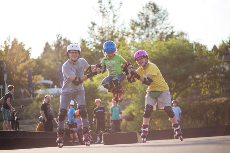 Daneben besitzen sie zudem einen niedrigen Schwerpunkt, durch den Kinder beim Fahren besser das Gleichgewicht halten können, während der mit der Fußplatte verzahnte Composite-Verbundrahmen und die weichen 72-mm-Rollen (80 a) Vibrationen hervorragend absorbieren.