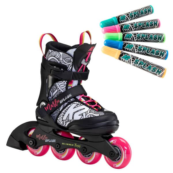 Jedes Kind liebt es seine selbstbemalten K2 Marlee Splash zu zeigen. Kinder können ihre Kreativtät an den Skates auslassen und ihren eigenen Style verpassen. Lassen Sie einfach die Kids mit dem Marlee Splash die Welt entdecken. Die Kombination aus K2 Original SoftBoot und K2 Speed Lacing System sorgt für perfekten Sitz. Die Skates sind um bis zu fünf Schuhgrößen verstellbar, so dass ein Kind sie länger als eine Saison benutzen kann. Durch die F.B.I Schiene sowie ABEC 3 Kugellager sind robuste und fehlerverzeihenden Materialien verbaut, damit Kind und Eltern sich lange an dem selbstkreierten Marlee Splash erfreuen können.