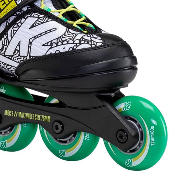 Jedes Kind liebt es seine selbstbemalten Raider Splash zu zeigen. Kinder können ihre Kreativtät an den Skates auslassen und ihren eigenen Style verpassen. Lassen Sie einfach die Kids mit dem Raider Splash die Welt entdecken. Die Kombination aus K2 Original SoftBoot und K2 Speed Lacing System sorgt für perfekten Sitz. Die Skates sind um bis zu fünf Schuhgrößen verstellbar, so dass ein Kind sie länger als eine Saison benutzen kann. Durch die F.B.I Schiene sowie ABEC 3 Kugellager sind robuste und fehlerverzeihenden Materialien verbaut, damit Kind und Eltern sich lange an dem selbstkreierten Raider Splash erfreuen können.